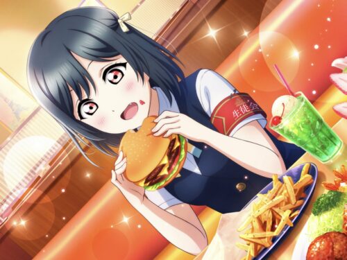 ↓クソデカバーガーを食べる栞子