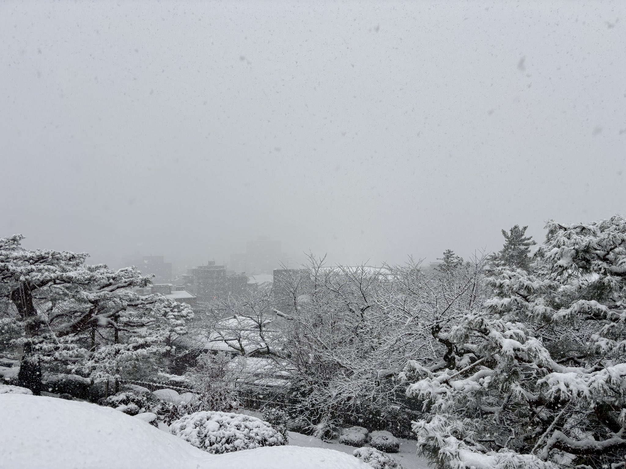右が青っぽいから左? だとしても白すぎる すごいな、雪の金沢は