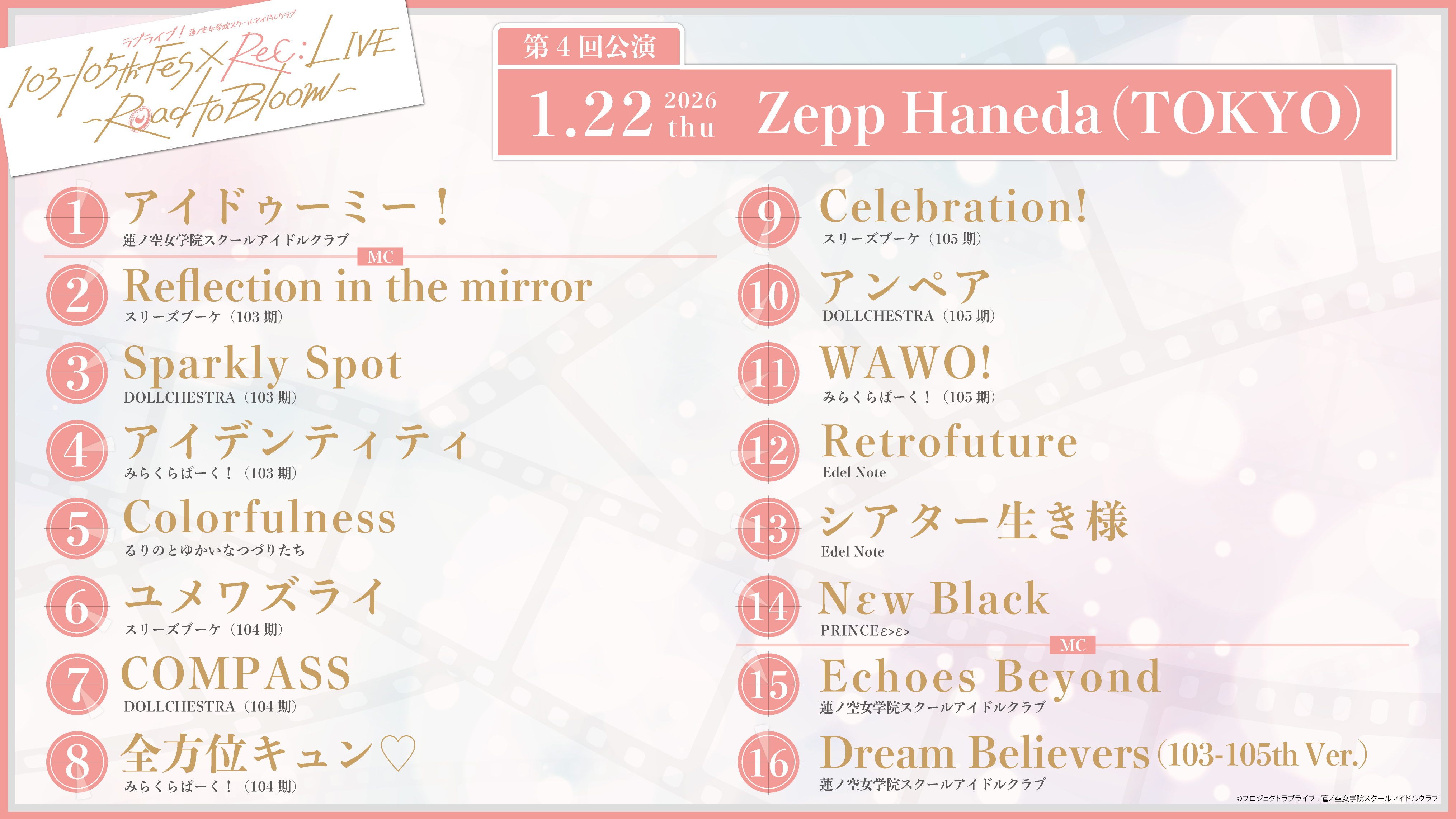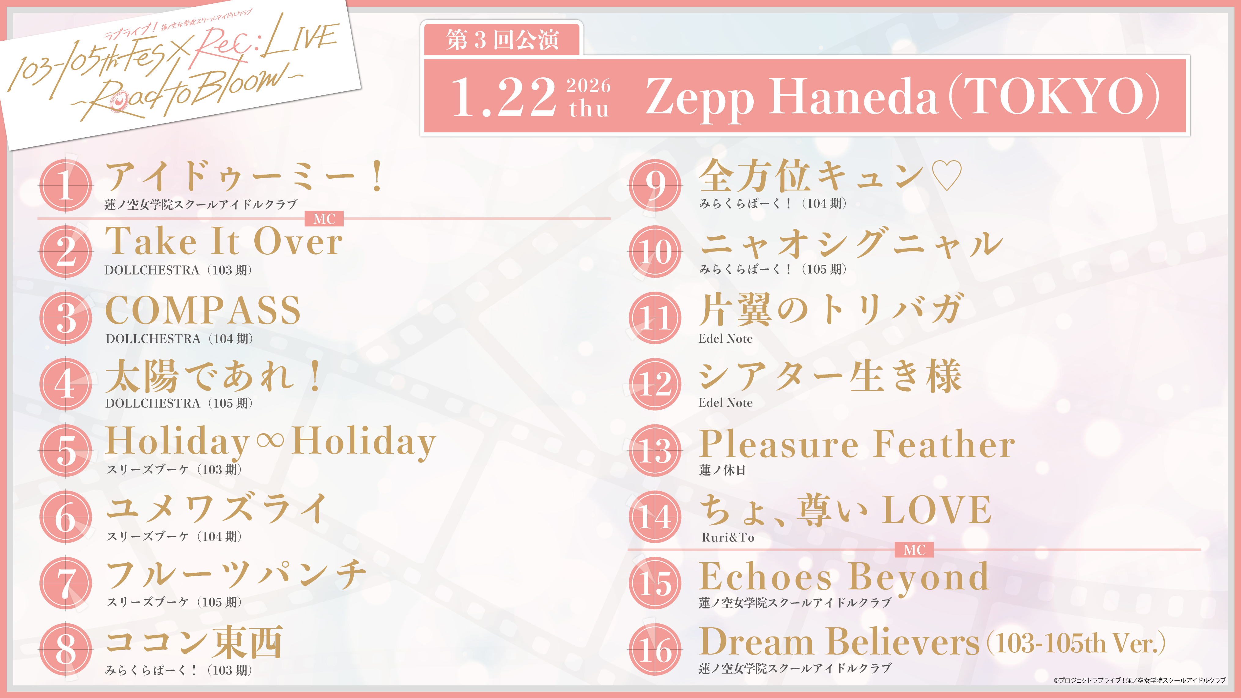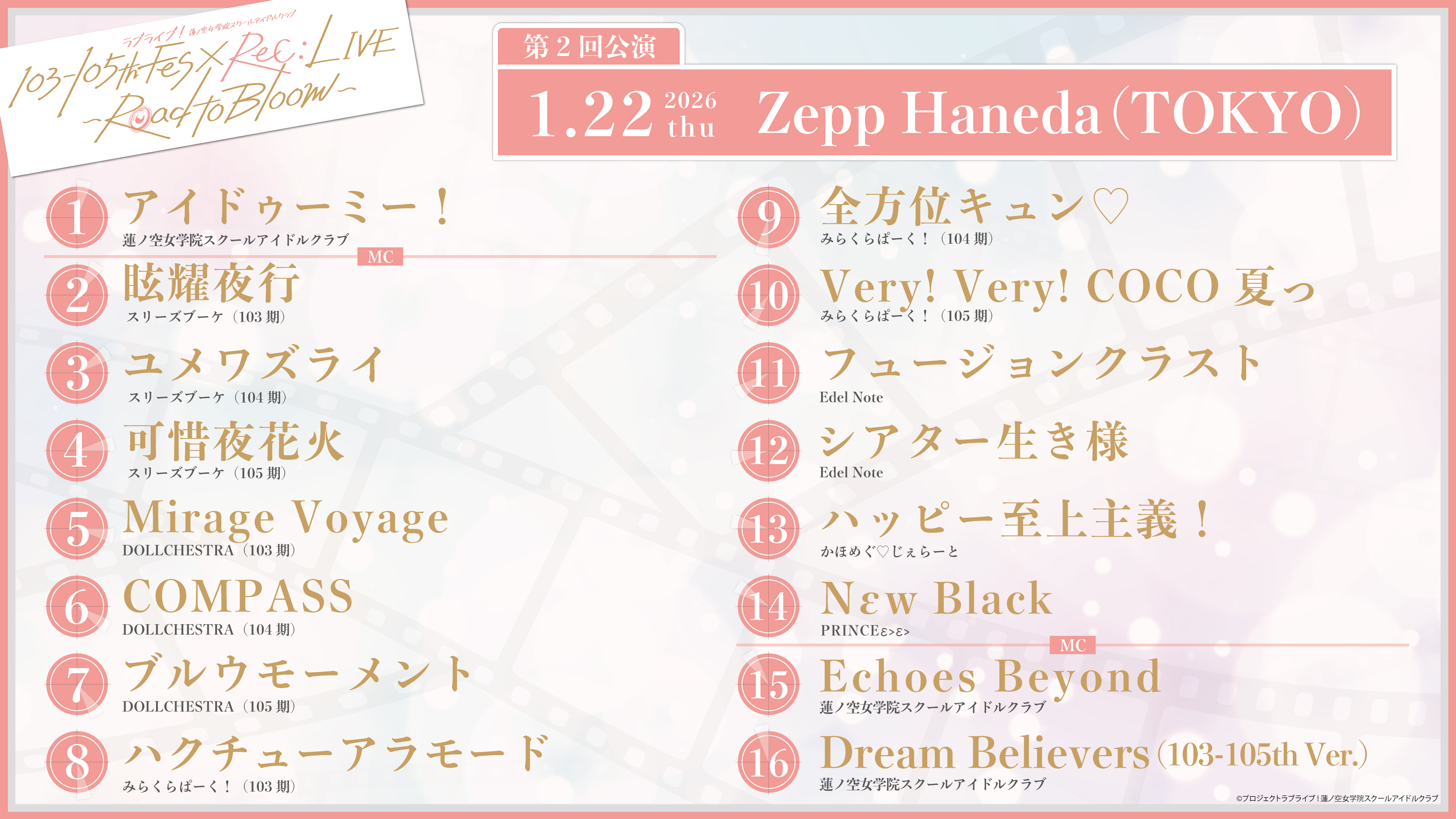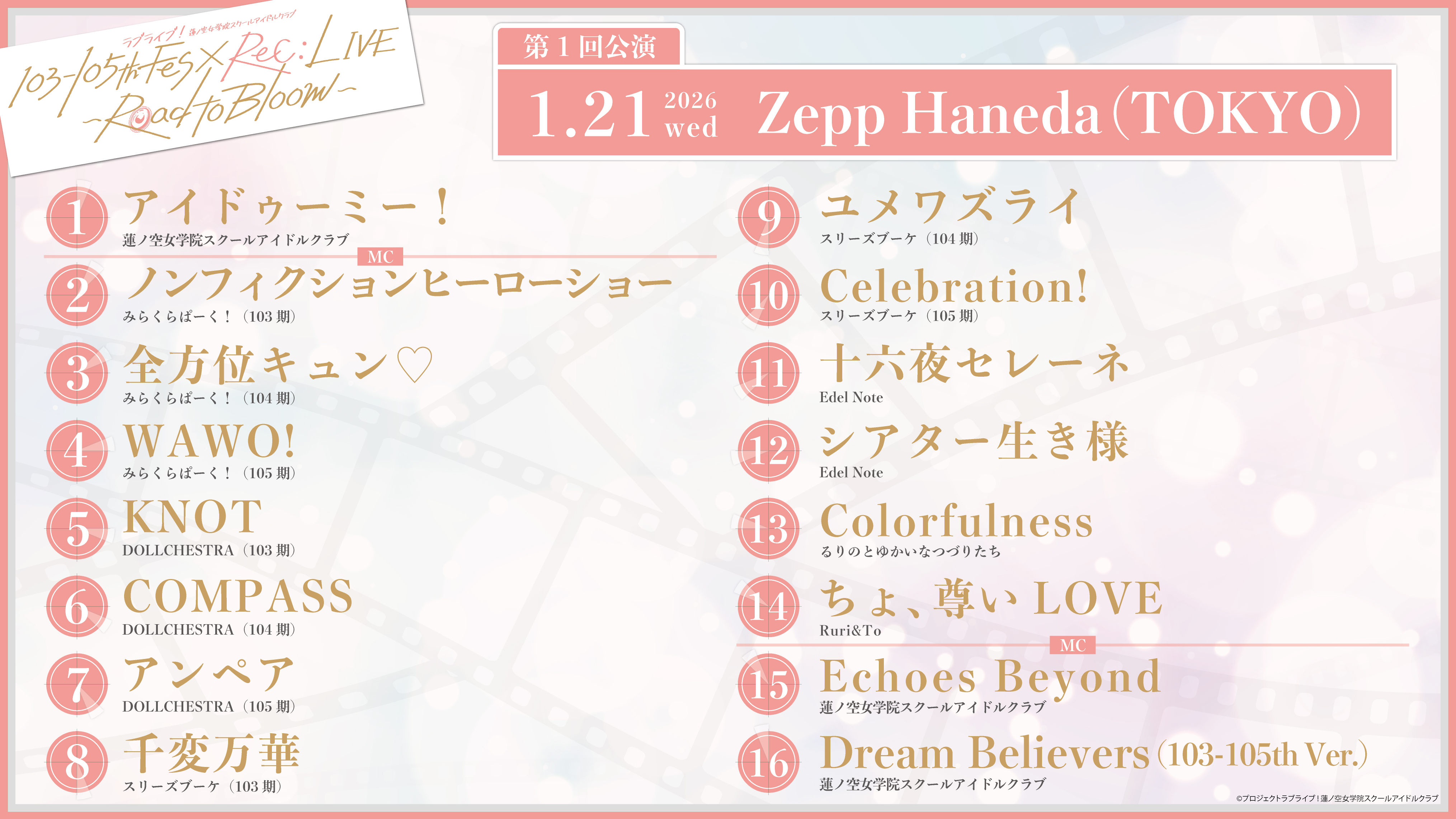 【画像】蓮ノ空103-105th Fes×ReC:LIVE ~Road to Bloom~のセトリ