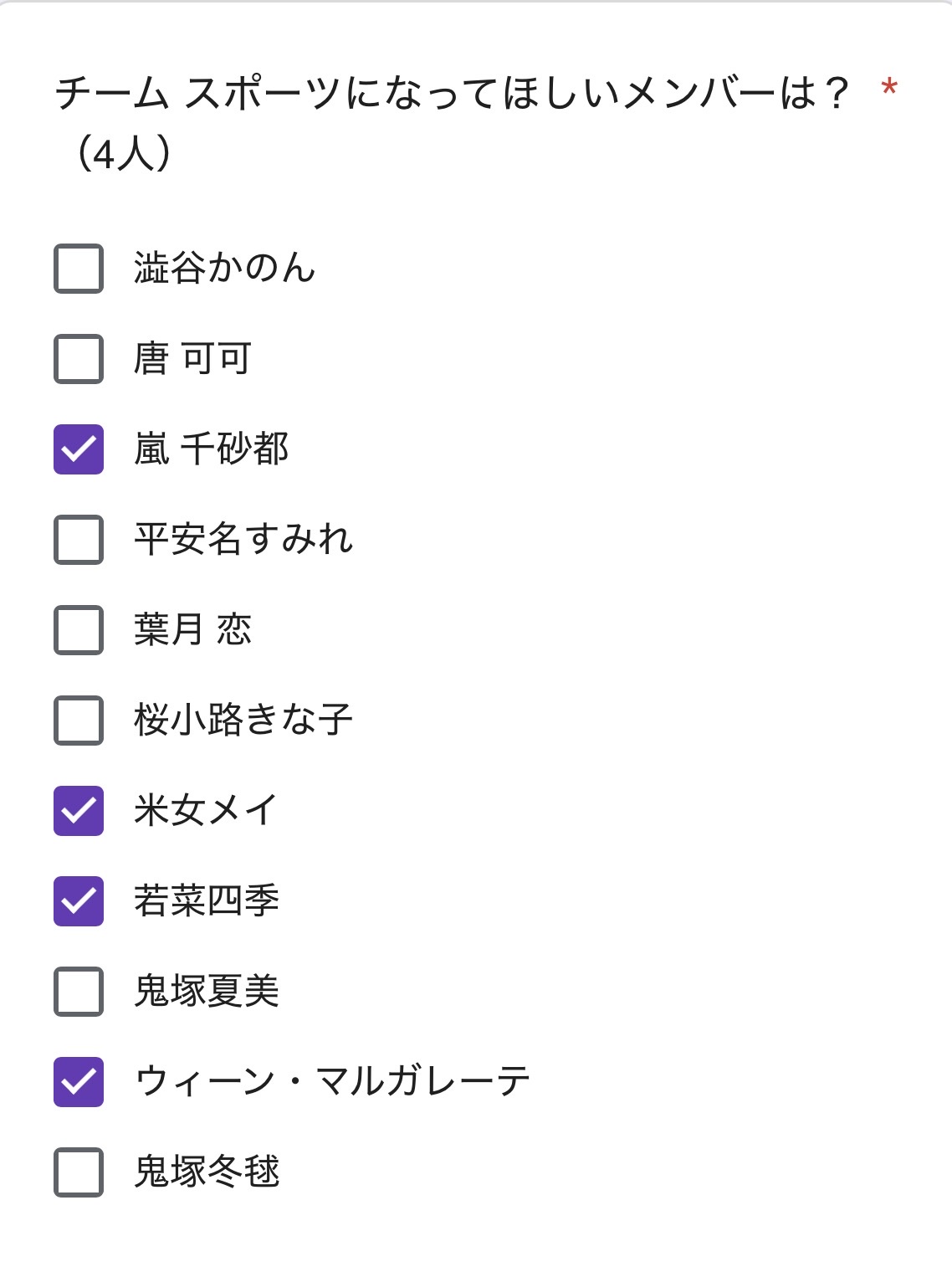かのマルはこどもチーム、ちさメイはスポーツチームでほぼ確定だろうけど他が面白い感じにばらけそうだな