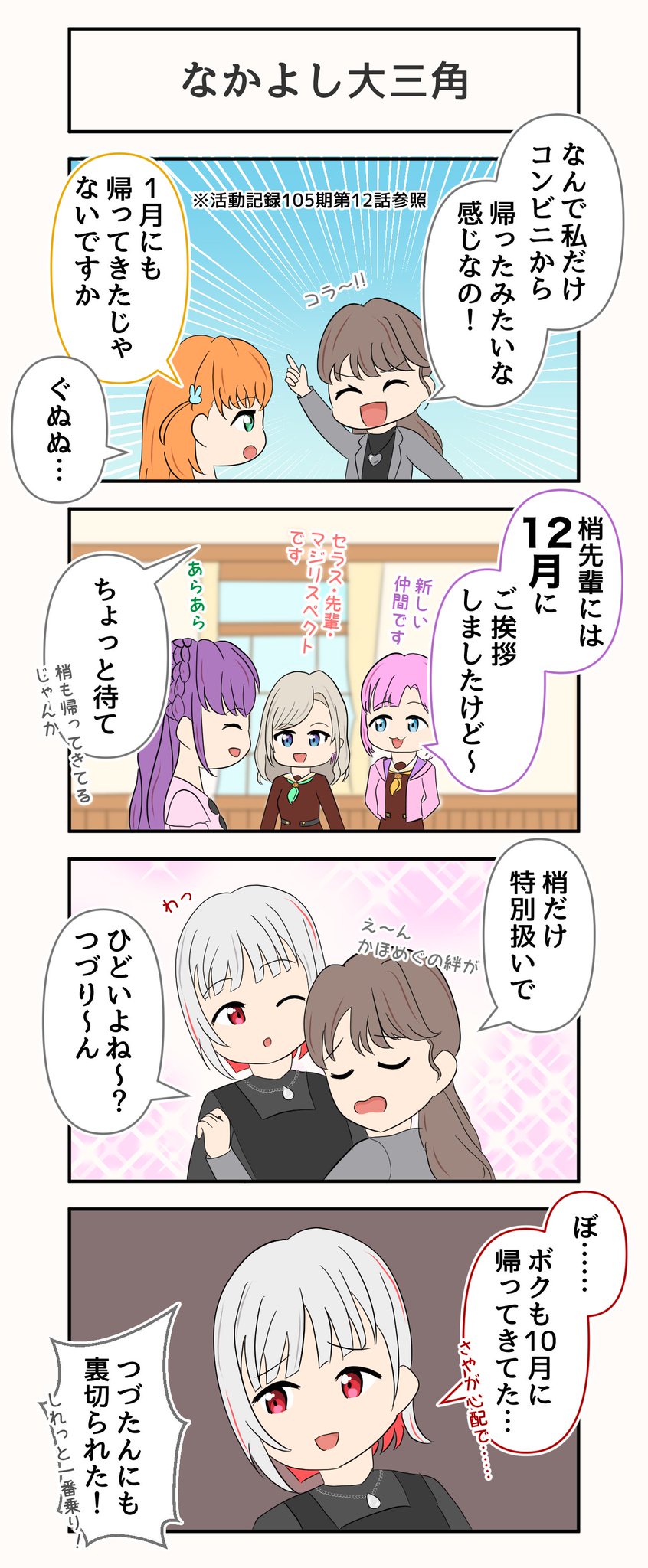2人とも学校来てたのに「えっめぐ遊びに来てたの?」「ひとりだけ…」みたいなつづこずでちょっと面白いんですよ…