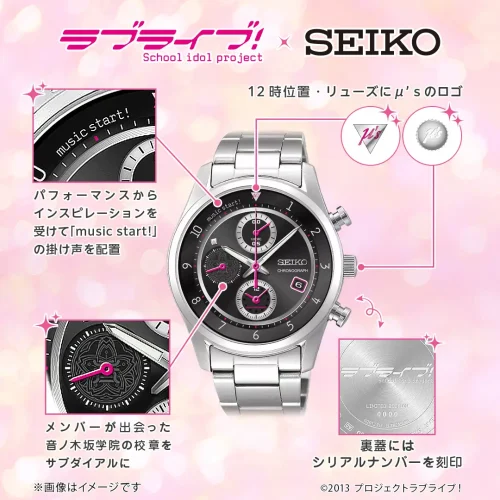 TVアニメ「ラブライブ!サンシャイン!!」の放送10周年を記念し、セイコー製クロノグラフモデルで浦の星女学院をモチーフにしたシリアルナンバー入り腕時計が発表された。2026年7月頃より予約開始予定で、価格は約6万円。浦の星女学院生放送も同日に告知された。
